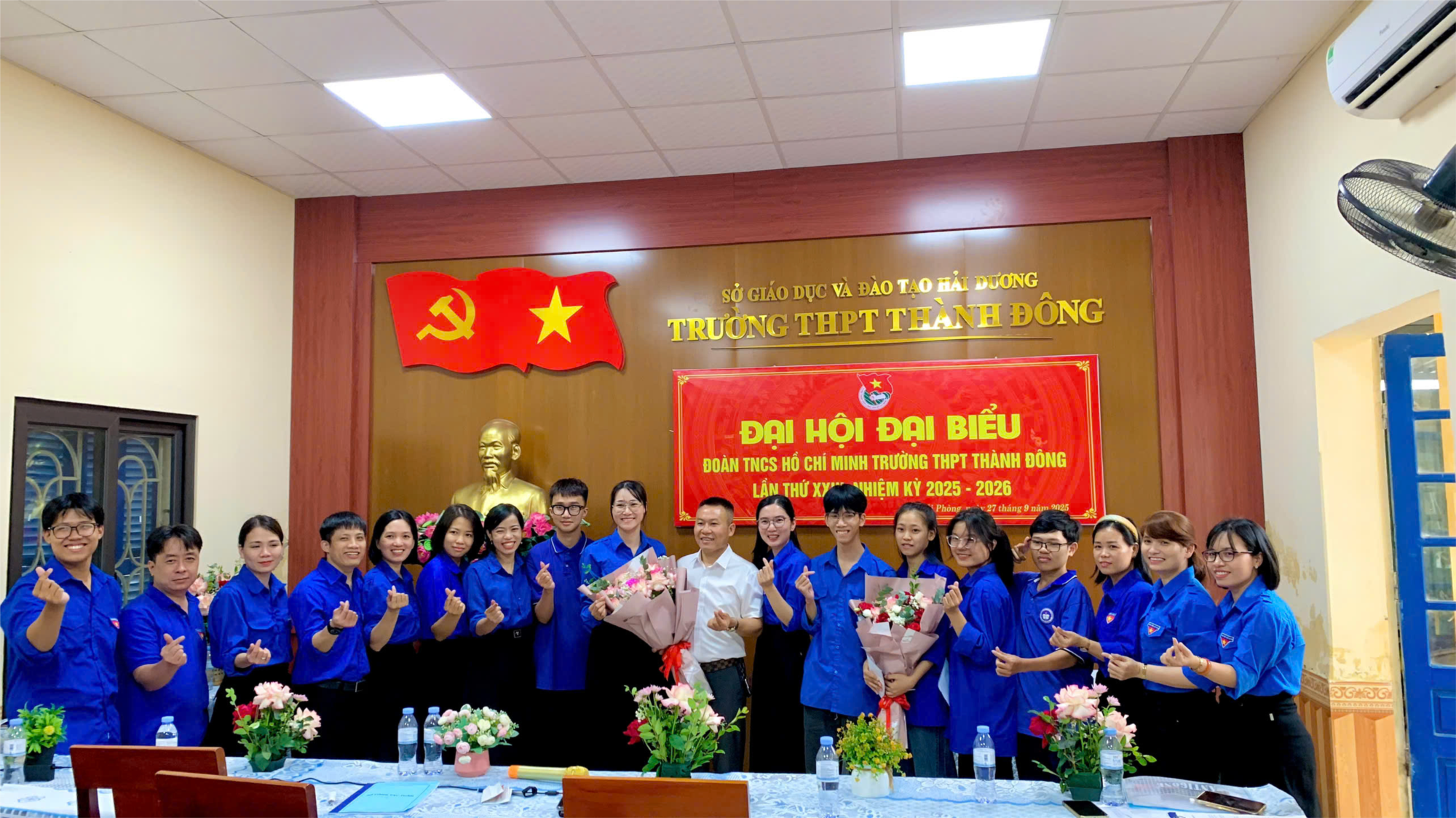 Hải Phong, ngày 27 tháng 9 năm 2025 – Trong không khí thi đua sôi nổi của tuổi trẻ cả nước chào mừng năm học mới và các sự kiện trọng đại của dân tộc, Đoàn TNCS Hồ Chí Minh trường THPT Thành Đông đã long trọng tổ chức thành công Đại hội Đại biểu lần thứ XXIII, nhiệm kỳ 2025-2026. Đại hội là một sự kiện chính trị quan trọng, đánh dấu một bước ngoặt mới trong công tác Đoàn và phong trào thanh niên của nhà trường, khẳng định vai trò xung kích, tình nguyện của tuổi trẻ Thành Đông trong sự nghiệp xây dựng và phát triển.