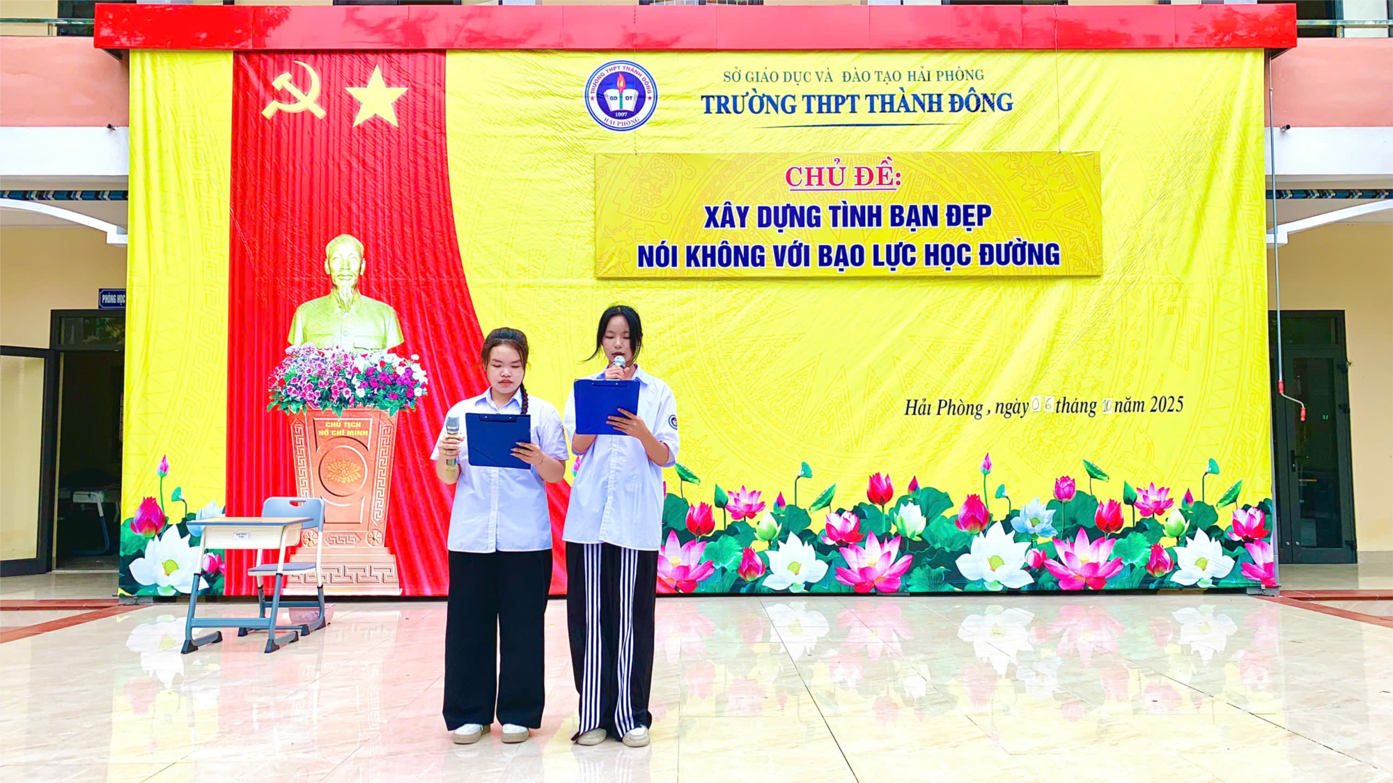 Sáng thứ Hai (06/10/2025), không khí tại Trường THPT Thành Đông tràn đầy năng lượng khi thầy và trò cùng nhau tham dự buổi sinh hoạt chuyên đề: "Xây dựng tình bạn đẹp – Nói không với bạo lực học đường".